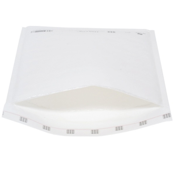 Laget av hvitt 79 grams kraftpapir med støtdempende luftbobler på innsiden, selvklebende med dekklapp.